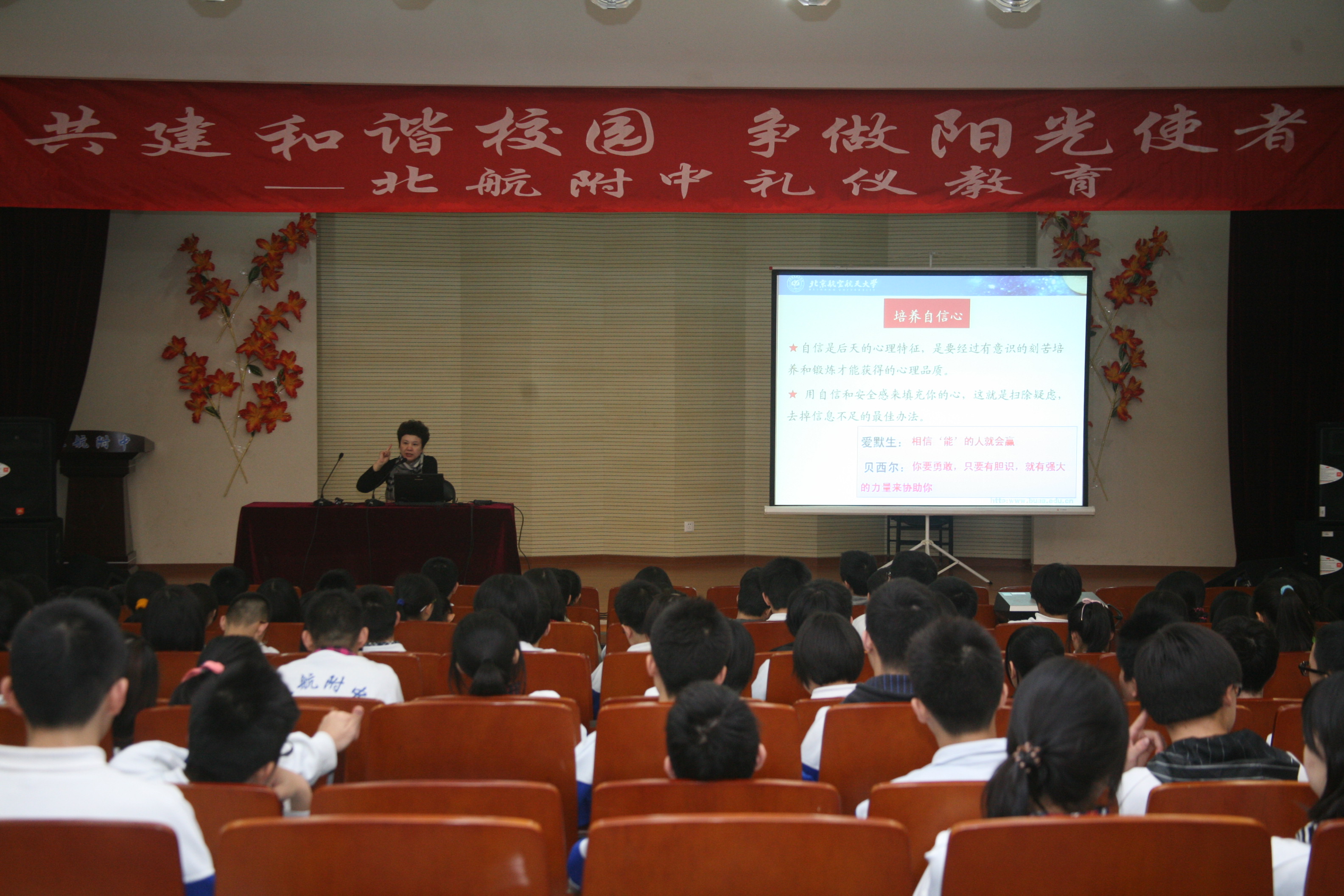 3月14日,在北航附中文明礼仪教育活动月之际,我院姚小玲教授应邀来到附中,为同学们带来了一堂题为“演讲与口才”的礼仪教育课程。