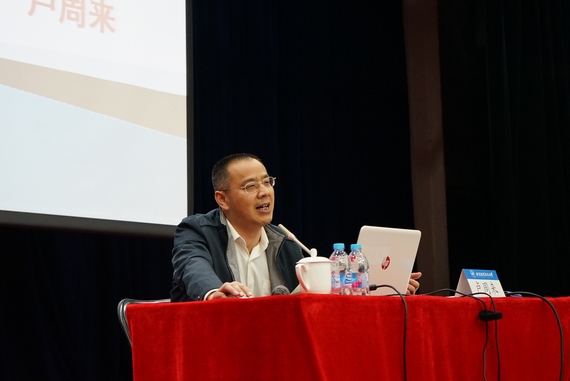 4月27日晚,由北京市教工委主办、我院与人文学院共同承办的“名家领读经典”——北京市级高校思想政治理论课,再次在我校学术交流厅举行。本次报告受邀嘉宾为我国著名的经济学家、当代中国(北京)发展战略与政策研究所副所长、国家发改委国际合作中心特约研究员、国防大学教授卢周来,其报告主题为《准确把握中国经济的大逻辑》。来自中国人民大学、北京理工大学、北京信息科技大学等多所高校的学生及北京欧美大片ppt免费大全“青年马克思主义研修班”全体学员共计400余人参加了此次理论学习。我校党委副书记李军锋、北京市委教育工委宣教处刘冰、人文学院与马克思主义学院联合分党委负责人等出席此次报告会。