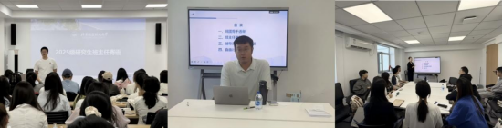 结合自身经历与博士阶段学习特点,华思衡老师为BY25281博士班的同学们送上成长建议。他强调,博士研究生需尽早明确学术目标、制定科学规划,以“时不我待”的态度迅速进入学习状态。随后,在交流互动环节中,同学们依次进行自我介绍,增进彼此了解,初步构建起温暖的集体氛围。25级硕士班班主任张超老师则是结合硕士研究生阶段成长需求与学院育人特色对同学们提出殷切期望。他指出,学生骨干作为班级的“主心骨”、师生间的“连心桥”,希望各位学生骨干牢记服务初心,发挥模范带头作用;同时张老师鼓励全体硕士新生主动参与班级建设,珍惜同窗情谊,在互助共进中丰富研究生生活、提升综合素养。