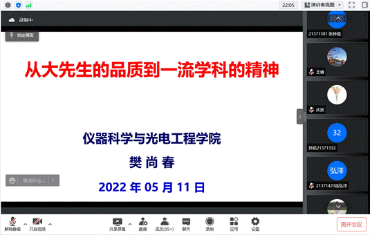 5月11日下午,马克思主义学院基础教研室党支部与仪器科学与光电工程学院测控系教工党支部联合共建启动仪式暨集体学习日活动成功举办。仪器科学与光电工程学院院长、教授、长江学者徐立军,马克思主义学院党委书记、教授高宁出席启动仪式并致辞。仪器科学与光电工程学院教授、北京市教学名师樊尚春和马克思主义学院高宁分别作主题报告,来自两个支部的党员教师及相关专业的部分师生共计180余位参会者线上学习。活动由马克思主义学院基础教研室党支部书记付丽莎主持。